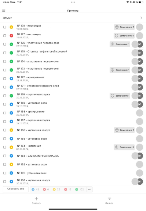 • Статусы замечаний и история их устранения
