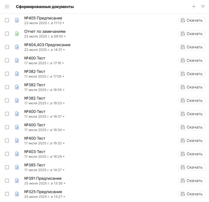 • Автоматическое формирование актов и протоколов приёмки