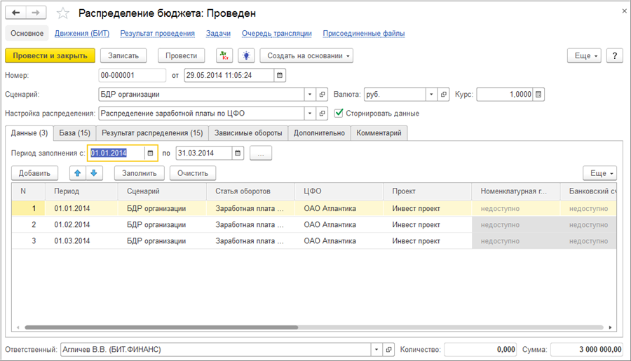Документ «Распределение бюджета» в БИТ.ФИНАНС