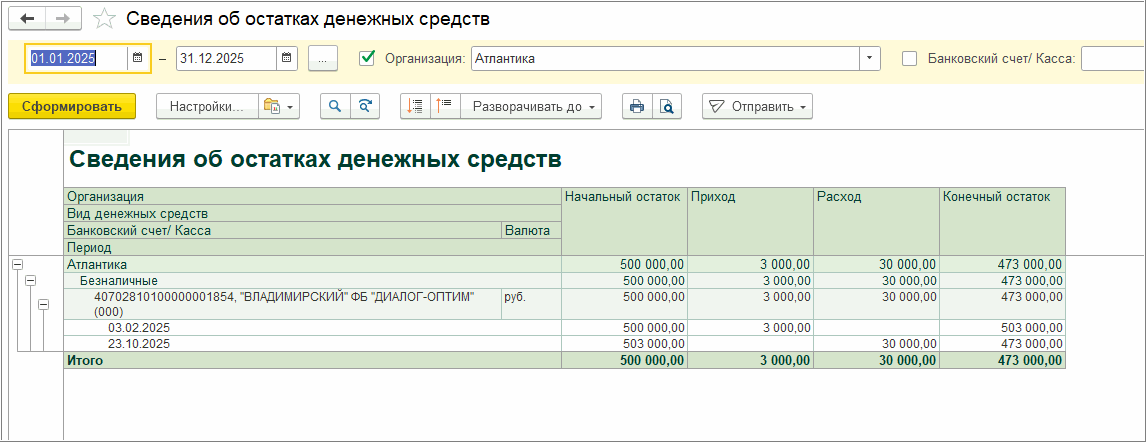Отчет «Сведения об остатках денежных средств»